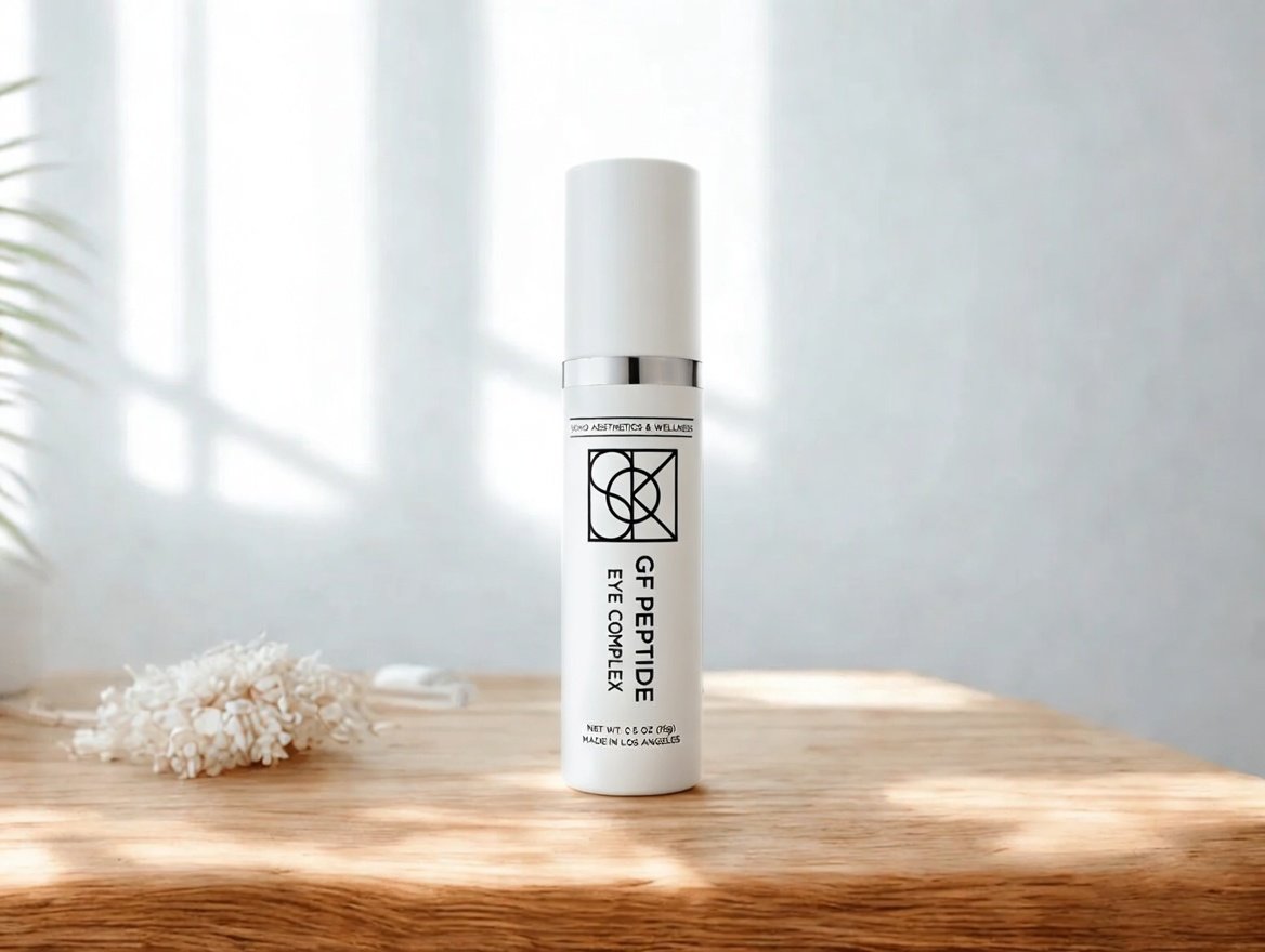 The GF Peptide Eye Complex from Soko Aesthetics & Wellness is a next-generation eye treatment designed for the delicate under-eye area. This advanced formula combines a bioengineered, plant-derived growth factor (Nicotiana Benthamiana Octapeptide-30 sh-Oligopeptide-2) with wrinkle-relaxing peptides, stabilized vitamin C (Tetrahexyldecyl Ascorbate), and soothing botanicals to address multiple signs of aging and fatigue in one lightweight serum.